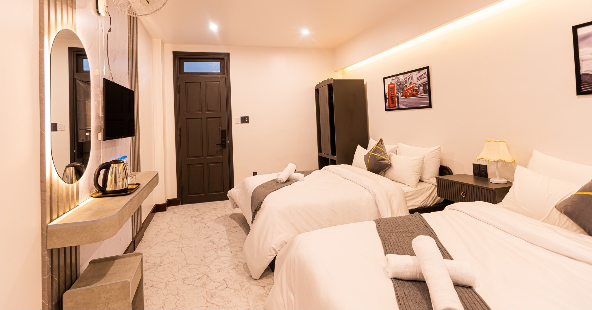 HT House – Khách sạn view Thành Phố Đà Lạt được tân trang theo hướng hiện đại, chỉnh chu trong từng chi tiết của căn phòng. Màu sắc trung tính, trang nhã mang đến không gian dễ chịu, không kém phần tinh tế