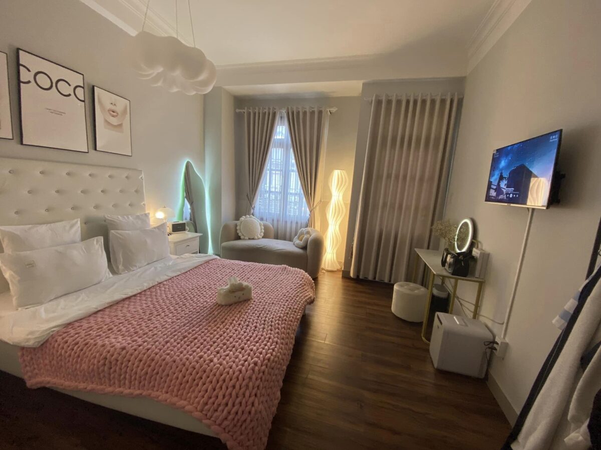 Homestay độc đáo tone xám đen Đà Lạt với các phòng được trang trí theo xu hướng hiện đại và sang trọng. Với thiết kế tối giản, thoáng mát và đầy đủ tiện nghi trong phòng.